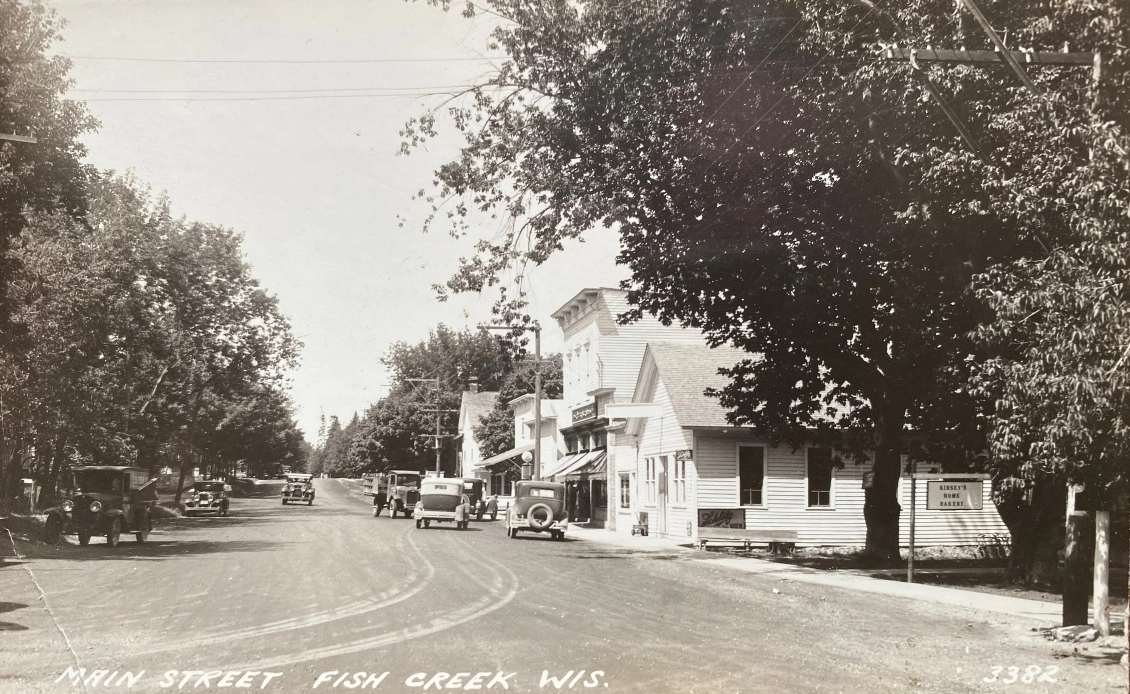 Local entrepreneur Myron Stevens bought Fish Creek’s old schoolhouse and moved it to Main Street, opening the “White Front” Pool Hall & Soft Drink Saloon during Prohibition.